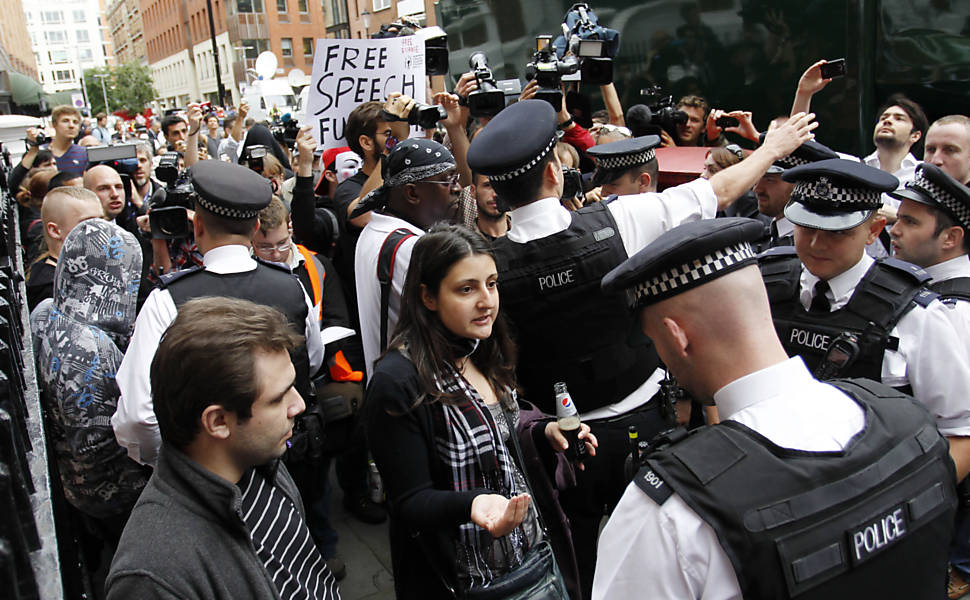 3. A polícia britânica invade a embaixada, prende Assange e o envia para a Suécia